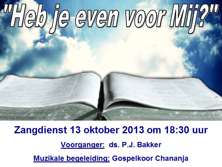 zondag 13 oktober 2013 om 18:30ZangdienstVoorganger(s): Ds. P. Bakker
